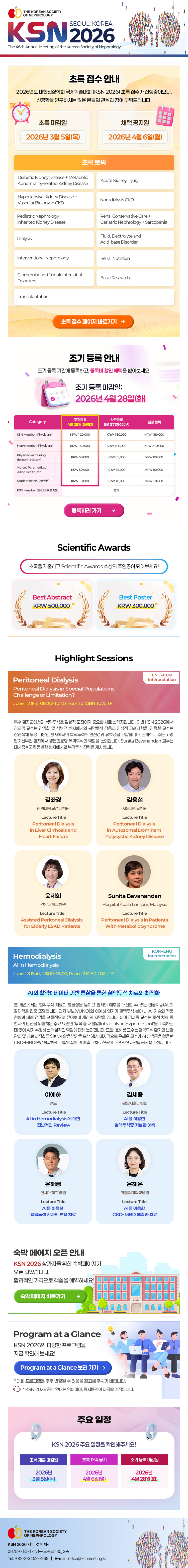 [대한신장학회] 대한신장학회 제46차 국제학술대회 (KSN 2026) 개최 안내  |