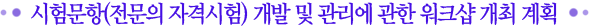 Àü¹®°ú¸ñ ÇÐȸÀÇ Àü¹®ÀÇ ÀڰݽÃÇè °ü¸® ¾÷¹«¿¡ µµ¿òÀ» ÁÖ°íÀÚ º»È¸¿¡¼´Â ¸Å³â ½ÃÇè¹®Ç× °³¹ß ¹× °ü¸®¿¡ °üÇÑ ¿öÅ©¼¥À» °³ÃÖÇϰí ÀÖ´Ù. ¿ÃÇØ´Â Á¦ÀÏ ¸ÕÀú ´ëÇÑÀ̺ñÀÎÈİúÇÐȸ¸¦ ´ë»óÀ¸·Î 6¿ù 13ÀÏ ¿ÀÈÄ 1½Ã¿¡ ¼¿ï´ëÇб³º´¿ø¿¡¼ °³ÃÖÇÒ ¿¹Á¤ÀÌ´Ù. º» ¿öÅ©¼¥Àº °³ÃÖ ½ÅûÀ» ÇÑ ÇÐȸ¸¦ ´ë»óÀ¸·Î º»È¸ °í½ÃÀ§¿øÈ¸¿¡¼ Áö¿ø ¿©ºÎ¸¦ ³íÀÇÇÑ ÈÄ ÁøÇàÇϰí ÀÖ´Ù.