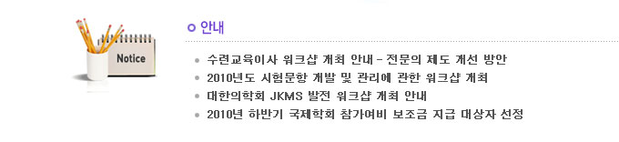 -¼ö·Ã±³À°ÀÌ»ç ¿öÅ©¼¥- Àü¹®ÀÇ Á¦µµ °³¼± ¹æ¾È 2010³âµµ ½ÃÇè¹®Ç× °³¹ß ¹× °ü¸®¿¡ °üÇÑ ¿öÅ©¼¥ °³ÃÖ ´ëÇÑÀÇÇÐȸ JKMS ¹ßÀü ¿öÅ©¼¥ °³ÃÖ ¾È³» 2010³âµµ ÇϹݱ⠱¹Á¦ÇÐȸ Âü°¡¿©ºñ º¸Á¶±Ý Áö±Þ ´ë»óÀÚ ¼±Á¤