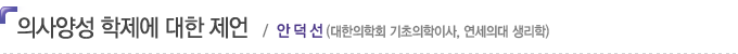 µû¶ó¼ Àý´ëÀûÀ̰í, ¿Ïº®Çϸç, Ç×»ó ¿ÇÀº ÇÐÁ¦¶õ ÀÖÀ» ¼ö ¾ø´Ù´Â Á¡¿¡ ¿ì¸®°¡ µ¿ÀÇÇÒ ¼ö ÀÖ´Ù¸é, ¡®¹Ù¶÷Á÷ÇÑ Àǻ硯 ¾ç¼ºÀ» À§ÇØ Àǰú´ëÇÐÀÌ ÀûÇÕÇÏ´Ù´øÁö ȤÀº ÀÇÀü¿øÀ̾î¾ß¸¸ µÈ´ÙµçÁö ÇÏ´Â ÁÖÀåÀº ÀÌ¹Ì Àǹ̰¡ ¾ø´Ù°í »ý°¢ÇÑ´Ù. À̺¸´Ù´Â °³°³ÀÇ Àǰú´ëÇРȤÀº ÀÇÇÐÀü¹®´ëÇпøÀÌ ÀÇ·áÀü¹®°¡·Î¼ÀÇ ÀÚÁúÀ» °®Ãá ÇлýÀ» ¾î¶»°Ô ÇÏ¸é ¼±¹ßÇÒ ¼ö ÀÖ´ÂÁö, ±×¸®°í ÀÌ·¸°Ô ¼±¹ßµÈ ÇлýµéÀÌ ¡®Àü¹®°¡·Î¼ÀÇ Ç°¼ºÀ» °®Ãá ÀμúÀÇ¡¯³ª ¡®ÀÇ»ý¸íºÐ¾ßÀÇ ±¹Á¦ °æÀï·ÂÀ» °®Ãá ÀǰúÇÐÀÚ¡¯·Î Ä¿³ª°¡±â À§ÇØ ¾î¶² ±³À°À» ½ÃÇàÇØ¾ßÇÏ´ÂÁö¿¡ ´ëÇØ ¿ì¸® ¸ðµÎ °í¹ÎÇÏ°í ³ë·ÂÇØ¾ß ÇÑ´Ù°í »ý°¢ÇÑ´Ù. Áï ¼ºÀû ¿ì¼ö °í±³Á¹¾÷Àڷθ¸ ä¿öÁ³´ø ±âÁ¸ÀÇ Àǰú´ëÇÐ ½ÅÀÔ»ý ¼±¹ß ¹æ½ÄÀ» ±×´ë·Î °í¼öÇÏ´Â °ÍÀÌ ¾Æ´Ï¶ó, ÀÏÁ¤ ºñÀ²ÀÇ ÇлýÀ» ÇлçÆíÀÔ»ýÀ¸·Î Ãæ´çÇϰí, À̵éÀÇ ¼±¹ß ¹æ½Äµµ ¼ºÀû À§ÁÖ¿¡¼ ÀÇ·áÀÎÀ¸·Î¼ÀÇ Ç°¼º°ú ÀÚÁú¿¡ ´ëÇÑ °ËÁõÀ» °ÈÇÒ °æ¿ì ¡®ÀÇÇо缺 ÇÐÁ¦ÀÇ ´ëÇÐ ÀÚÀ² ¼±Åá¯À» Çã¿ëÇÑ ±³°úºÎ ¹æÄ§¿¡ ´ëÇÑ »çȸ Àϰ¢ÀÇ ¿ì·Áµµ ºÒ½Ä½Ãų ¼ö ÀÖÀ» °ÍÀ¸·Î »ý°¢ÇÑ´Ù.