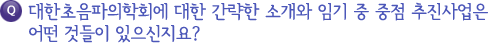 ¶ÇÇÑ ÇÐȸÀÇ ±¹Á¦È¿¡ ¹ß¸ÂÃß¾î ÇмúÁöÀÇ SCIÈ ÃßÁø, ȸ¿ø ¼öÀÇ Áõ°¡¿Í Àü°øÀÇ Âü¿© È®´ë ¹æ¾È, ¿µ¹® ȨÆäÀÌÁö¸¦ Æ÷ÇÔÇÑ ÇÐȸ ȨÆäÀÌÁöÀÇ Áö¼ÓÀûÀÎ ¾÷±×·¹À̵å, ȸ¿ø°£ °¡Á· °°Àº Ä£¸ñ µµ¸ð¸¦ À§ÇÏ¿© ³ë·ÂÀ» ÇϰڽÀ´Ï´Ù. ¾Æ¿ï·¯ ±Þº¯ÇÏ´Â ÁÖº¯ ÀÇ·á ȯ°æÀÇ º¯È¿¡ ´Éµ¿ÀûÀ¸·Î ´ëóÇÏ¿© ÃÊÀ½ÆÄ °Ë»çÀÇ ÀǷẸÇè, Á¤µµ°ü¸®, ÀÎÁõÁ¦ °°Àº ³Á¦µéÀÇ ÇØ°áÀ» À§ÇØ ³ë·ÂÇϰڽÀ´Ï´Ù. ÀÌ·¯ÇÑ °úÁ¦µéÀ» ¿øÈ°È÷ ÃßÁøÇϱâ À§ÇÏ¿© ÇÐȸÀÇ Á¶Á÷À» È®´ë °³ÆíÇÏ¿´½À´Ï´Ù.