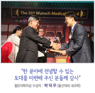 Àǰú´ëÇÐÀ» Á¹¾÷Çϰí ÀÇÇÐ ¿¬±¸¸¦ ½ÃÀÛÇÑ Áö °Ü¿ì 4³â °¡±îÀÌ ¹Û¿¡ µÇÁö ¾Ê´Â Àú¿¡°Ô ÀÌ·¯ÇÑ ¿µ¿¹·Î¿î »óÀ» ÁֽŠ´ëÇÑÀÇÇÐȸ¿¡ °¨»çÀÇ ¸»¾¸À» µå¸³´Ï´Ù. ¶ÇÇÑ ÀúÀÇ ¸ð±³ ¼¿ï´ëÇб³ Àǰú´ëÇаú Á¦°¡ À¯ÀüüÇÐÀ» Àü°øÇÒ ¼ö ÀÖµµ·Ï ÁöµµÇØ Áֽðí À̲ø¾îÁֽô ÀúÀÇ Àº»çÀ̽м¿ïÀÇ´ë »ýÈÇб³½ÇÀÇ ¼Á¤¼± ±³¼ö´Ô²² ¸ðµç ¿µ±¤À» µ¹¸®°í ½Í½À´Ï´Ù.