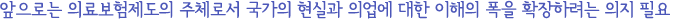 µû¶ó¼ Áö±ÝºÎÅÍ¶óµµ ÀÇ·áÀü´Þü°è¸¦ È®¸³ÇÏ´Â °ÍÀº ¸Å¿ì Áß¿äÇÑ ÀÏÀÌ´Ù. ÀÌ Á¡¿¡ Âø¾ÈÇÏ¿© ´ëÇÑÀÇ»çÇùȸ´Â Áö³ ÇØ ÀÌ¿¡ ´ëÇÑ Á¤Ã¥ Á¦¾ÈÀ» Çß°í, Á¤ºÎ¿Í ÇÔ²² ÀÇ·áÀü´Þü°è¸¦ È®¸³Çϱâ À§ÇÑ ³íÀǸ¦ ÁøÇà ÁßÀÌ´Ù.
