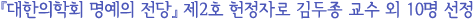 ÀÇÇйßÀüÀÇ ±â¹ÝÀÌ µÇ´Â ÇÐȸ Ȱµ¿¿¡ Çå½ÅÇÏ°í ºÀ»çÇÑ ºÐÀÇ ¾÷ÀûÀ» ±â¸®±â À§ÇØ ´ëÇÑÀÇÇÐȸ´Â 2008³â 11¿ù¿¡ ¡º´ëÇÑÀÇÇÐȸ ¸í¿¹ÀÇ Àü´ç¡»Á¦µµ¸¦ ½Å¼³ÇÏ¿´À¸¸ç, ÀÛ³â ÃÑȸ¿¡¼´Â À±Àϼ± ±³¼ö¸¦ ¸í¿¹ÀÇ Àü´ç Á¦1È£ ÇåÁ¤ÀÚ·Î ¼±Á¤ÇÑ ¹Ù ÀÖ´Ù. ¿ÃÇØ´Â ±èµÎÁ¾, ±è¸í¼±, ±è¼ºÈ¯, ³ª¼¼Áø, ½ÉÈ£¼·, ¿À±à¼±, À̰©¼ö, À̱⿵, ÀÌÁ¾·û, ÀüÁ¾ÈÖ, Á¤ÀÏõ ±³¼ö¸¦ Á¦2È£ ÇåÁ¤ÀÚ·Î ¼±Á¤Çß´Ù. ´ëÇÑÀÇÇÐȸ´Â ȨÆäÀÌÁö¿¡ ¸í¿¹ÀÇ Àü´ç Äڳʸ¦ ¸¶·ÃÇÏ¿© ÇåÁ¤ µÇ½Å ºÐµéÀÇ ¾÷Àû°ú °ü·Ã ÀڷḦ ¼Ò°³Çϰí ÀÖ´Ù. |