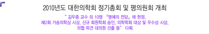 ´ëÇÑÀÇÇÐȸ´Â 3¿ù 29ÀÏ ¹Ð·¹´Ï¾ö ¼¿ïÈúưȣÅÚ¿¡¼ 2010³âµµ Á¤±âÃÑȸ ¹× ÆòÀÇ¿øÈ¸¸¦ °³ÃÖÇϰí 2010³âµµ »ç¾÷°èȹ(¾È)°ú ¿¹»ê(¾È)À» ºñ·ÔÇÑ ÁÖ¿ä ¾È°ÇÀ» ½ÉÀÇÇϰí ÀǰáÇÏ¿´´Ù. |