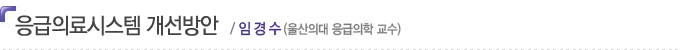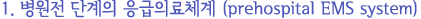 ±¹¹ÎÀÇ »ý¸í°ú Á÷°áµÈ ÀÀ±ÞÀÇ·áü°è(EMS system; emergency medical services system)´Â »çȸ¾ÈÀü¸Á(social safety)ÀÇ Áß¿äÇÑ ¿ä¼ÒÀ̹ǷÎ, ¼±Áø±¹¿¡¼´Â ÀÀ±ÞÀǷḦ ¹Î°£ÀÇ·á±â°ü¿¡ ÀÇÁ¸ÇÏÁö ¾Ê°í Á¤ºÎ°¡ ÁÖµµÇÏ¿© °³¼±½Ã۰í ÀÖ´Ù. ¿ì¸®³ª¶óµµ 1989³âºÎÅÍ Á¤ºÎ°¡ ÁÖµµÇÏ¿© Á¤Ã¥ÀûÀ¸·Î ÀÀ±ÞÀÇ·áü°è¸¦ ±¸ÃàÇϱ⠽ÃÀÛÇÏ¿´À¸³ª, ¾ÆÁ÷µµ ÀÀ±ÞÀÇ·áü°è´Â ½Ã±ÞÈ÷ °³¼±ÇØ¾ß ÇÒ ¸¹Àº ¹®Á¦Á¡ÀÌ Á¸ÀçÇϰí ÀÖ´Â ½ÇÁ¤ÀÌ´Ù. º»¹®¿¡¼´Â ¿ì¼±ÀûÀ¸·Î ÇØ°áÇØ¾ß ÇÒ ¹®Á¦Á¡°ú °³¼±¾È¿¡ ´ëÇÏ¿© °£·«ÇÏ°Ô ÇÇ·ÂÇϰíÀÚ ÇÑ´Ù.