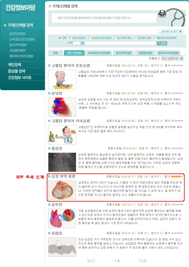 ¼¼ºÎ ÁÖÁ¦¿¡ ´ëÇÑ °Ç°Á¤º¸ÄÜÅÙÃ÷ ±¸¼º |