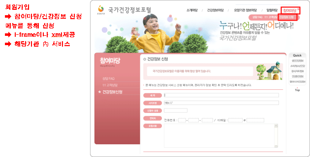 ±â°üÀº ¿øÇÏ´Â °Ç°Á¤º¸¸¦ ½Åû(Âü¿©¸¶´ç/°Ç°Á¤º¸½Åû)Çϸé i-frameÀ̳ª xml ¹æ½ÄÀ¸·Î ÇØ´ç±â°üÀÇ »çÀÌÆ®Ò®¿¡¼ ¼ÒºñÀڰǰÁ¤º¸ ÄÜÅÙÃ÷¸¦ ¼ºñ½ºÇÒ ¼ö ÀÖ½À´Ï´Ù.