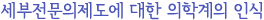 ÀÇÇÐȸ´Â ¾Õ¼ ³íÀÇµÈ °üÁ¡¿¡¼ Á¦µµÀÎÁõÁ¦¸¦ À¯ÁöÇϸç Ã˹ߵǴ ¹®Á¦µéÀ» °¢ ÇÐȸÀÇ Âü¿© ÇÏ¿¡ ÇØ°áÇϰíÀÚ ³ë·ÂÇϰí ÀÖ´Ù. ±×¸®°í °¢ ÇÐȸ³ª ÇÐȸ ȸ¿øµéÀÌ º¸´Ù Å« Ʋ¿¡¼ º» Á¦µµ¿¡ ´ëÇØ Á¢±ÙÇØ Áֱ⸦ ±ÇÀ¯Çϰí, µ¿ÂüÀ» µ¶·ÁÇϰí ÀÖ´Ù. ¶ÇÇÑ ÀÇÇÐȸ´Â ÇÐȸÀÇ ÀǰßÀ» °æÃ»ÇÏ°í µå·¯³ ¹®Á¦µéÀ» ºÐ¼®ÇÏ¿© ÇØ°áÇϰíÀÚ ³ë·ÂÇÒ »Ó¸¸ ¾Æ´Ï¶ó, ¿¬±¸ÇÏ´Â ÀÚ¼¼¸¦ °ßÁöÇϰí ÀÖ´Ù. ±× ÀÏȯÀ¸·Î Áö³ÇØ ÀÇÇù ÀÇ·áÁ¤Ã¥¿¬±¸¼ÒÀÇ Áö¿øÀ¸·Î ¡¸¼¼ºÎÀü¹®ÀÇÁ¦µµ Á¤¸³À» À§ÇÑ ÀÇÇаèÀÇ ÀνÄÁ¶»ç ¹× Á¦µµ Ȱ¼ºÈ ¹æ¾È ¿¬±¸ ¡¹¿¡ Âø¼öÇÏ¿´´Ù. ÀÌ ¿¬±¸ÀÇ ¸ñÀûÀº ¨ç¼¼ºÎÀü¹®ÀÇ Á¦µµÀÎÁõÀ» Æ÷ÇÔÇÑ ±¹³» Àü¹® Àη ÀÚ°Ý ÀÎÁ¤Á¦µµ¿¡ ´ëÇÑ ÀÇ°ß Á¶»ç¸¦ ½ÃÇàÇÏ¿© Á¦µµ ¿î¿µ ÇöȲ ¹× ¹®Á¦Á¡À» ÆÄ¾ÇÇÏ°í °³¼±¹æ¾ÈÀ» Á¶»çÇϸç, ¨èÀ̸¦ Åä´ë·Î ÇÕ¸®ÀûÀÎ ¿î¿µ½Ã½ºÅÛÀ» ¼³°èÇϰí, ¨éÁ¦µµÀÇ È°¼ºÈ ¹æ¾ÈÀ» ¸ð»öÇÔÀ¸·Î½á ÀÇÇÐ ¹ßÀüÀ» À§ÇÑ Á¤Ã¥ ¼ö¸³ÀÇ ±âÁذú ¹æ¹ýÀ» Á¦½ÃÇϰí, ¿ì¸®³ª¶ó¿¡¼ ¼¼ºÎÀü¹®ÀÇ Á¦µµÀÇ Á¤¸³À» À§ÇÑ ±âº»Àû ÀÚ·á¿Í À̰ßÀ» Á¶Á¤ÇÏ´Â ¿øÄ¢À» µµÃâÇÏ´Â °ÍÀ̾ú´Ù.