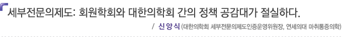 ¿À´Â 12¿ùÀ̸é Áö³ 2001³â ´ëÇÑÀÇÇÐȸ(ÀÌÇÏ ÀÇÇÐȸ)°¡ µµÀÔÇÑ ¼¼ºÎÀü¹®ÀÇÁ¦µµ ÀÎÁõÁ¦ ½ÃÇà 10ÁÖ³âÀ» ¸ÂÀÌÇÑ´Ù. º» Á¦µµ´Â 1992³â ¸ð ÇÐȸ¿¡¼ óÀ½ µµÀÔÇÏ¸é¼ È®»êµÈ ¡®ºÐ°ú¡¯ ÇüÅÂÀÇ ÀÓ»óÁø·á¿Í ºÐ°ú¼ö·Ã ¹× ºÐ°úÇÐȸ ¿î¿µ µîÀÌ ÀÚÄ© ÇÐȸ °£, Á÷Á¾ ¶Ç´Â °³ÀÎ °£ ¹Ý¸ñÀ̳ª ºÒ½ÅÀ» Á¶ÀåÇÒ »Ó¸¸ ¾Æ´Ï¶ó ÀϺο¡¼ ¼¼ºÎÀü¹® °ú¸ñÀ» ¹ýÁ¤ Àü¹® °ú¸ñÀÇ »óÀ§ °³³äÀ¸·Î Àß ¸ø ÀÌÇØÇϰí È«º¸ÇÔÀ¸·Î½á »çȸÀû È¥¶õÀ» ÀÏÀ¸Å³ ¿©Áö°¡ Ä¿Áö¸é¼ ÀÌ¿¡ ´ëÇÑ Á¤ºñ°¡ ÀÇÇаè Çö¾ÈÀ¸·Î ³íÀǵDZ⠽ÃÀÛÇÏ¿´´Ù.