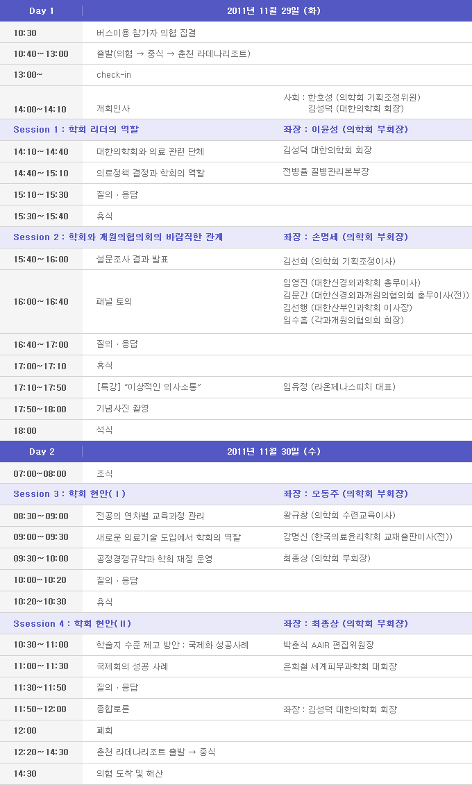 ¢Ã ÀÏÁ¤ : 2011. 11. 29(È) 14:00 ¡ 11. 30(¼ö) 12:00