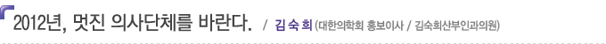 2012³âÀº 3³â¿¡ ÇÑ ¹ø¾¿ µ¹¾Æ¿À´Â ÀÇ»ç´ÜüÀåÀÌ ¹Ù²î´Â ÇØÀÌ´Ù. °¢ Áö¿ª ÀÇ»çȸ»Ó ¾Æ´Ï¶ó ÀÇ»çµéÀÇ ÃÖ°í ´ëÇ¥ÀÎ ´ëÇÑÀÇ»çÇùȸÀå, ´ëÇÑÀÇÇÐȸÀåÀÌ »õ·Î ÃëÀÓÇÏ´Â ÇØÀÌ´Ù. ´ëÇÑÀÇÇÐȸÀåÀº ÀÌ¹Ì 1³â Àü¿¡ Â÷±âȸÀåÀ» ¼±ÃâÇÏ¿© ¿ÃÇØ 3¿ù ÀÇÇÐȸ ÃÑȸ¿¡¼ ÃëÀÓÀ» ÇÏ¸é µÇÁö¸¸ ´ëÇÑÀÇ»çÇùȸÀåÀº ¿ÃÇØºÎÅÍ °£¼±Á¦·Î ¹Ù²î¾î óÀ½ ¼±°Å¸¦ ½Ç½ÃÇÏ°Ô µÈ´Ù. ÇÊÀÚ°¡ ÀÇ»ç´Üü¿¡ °ü¿©Çß´ø Áö³ 6³â°£ ÀÇ»çÇùȸ´Â È¥¶õÀÇ ¿¬¼ÓÀ̾ú´Ù. ÀÇÇùÀÇ Á¤Ã¥ÀÌ»ç·Î ÀÖ¾ú´ø 3³â µ¿¾È ȸÀåÀÇ »çÅð¿Í Àç¼±°Å µî ¼¼ ¹ø ȸÀåÀÌ ¹Ù²î¾úÀ¸¸ç, ±× ÈÄ ´ëÇÑÀÇÇÐȸ È«º¸ÀÌ»ç¿Í °ü¾Ç±¸ÀÇ»çȸÀåÀ¸·Î¼ÀÇ 3³â µ¿¾È ´ëÇÑÀÇ»çÇùȸ ȸÀå¿¡ ´ëÇÑ °í¼Ò°í¹ß »ç°ÇÀÌ °è¼ÓµÇ¾ú´Ù. ÀÓ¿øÁøµéÀÇ ÁÙ ÀÌÀº »çÅð´Â ¹°·Ð ´ëÀÇ¿øÃÑȸ´Â Æø·Â°ú °íÇÔÀ¸·Î ¾ó·èÁ³À¸¸ç ÀÌÁ¦´Â ÀÏ¹Ý ¾ð·Ð¿¡±îÁö ÀÇ»çµéÀÇ ³»ºÎ ºÐ¿ÀÌ ´ë¼Æ¯ÇʵDZ⵵ ÇÏ¿´´Ù.