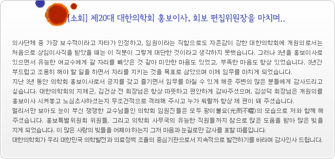¿ì¼± °Ý¿ù°£À¸·Î ¹ßÇàµÇ´Â ȸº¸ µî ±âÁ¸¿¡ È«º¸»ç¾÷À» ±×´ë·Î À¯ÁöÇÏ¸é¼ 2009³â¿¡ e-´º½º·¹Å͸¦ »õ·Ó°Ô â°£ÇÏ¿´´Ù. À̸ÞÀÏ·Î ¹ß¼ÛµÇ´Â e-´º½º·¹Åʹ ȸ¿øÇÐȸ»Ó ¾Æ´Ï¶ó ÀÇÇùÀÇ ¸ðµç ÀÇ»çȸ¿ø¿¡°Ô ¹ß¼ÛÇÏ´Â ½Ã½ºÅÛÀ» ±¸ÃàÇÏ¿© ¿Â¡¤¿ÀÇÁ¶óÀÎÀ» ÅëÇØ º¸´Ù ½Å¼ÓÇÏ°í Æø³ÐÀº ¼ÒÅëÀÇ °ø°£À¸·Î Ȱ¿ëÇϰíÀÚ Çß´Ù.
