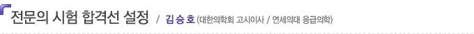 ù°, ¿Ã¹Ù¸¥ ÁذÅÂüÁ¶ Æò°¡°¡ µÇ±â À§Çؼ´Â Çհݼ±Àº °íÁ¤ Á¡¼ö, ÆÛ¼¾Æ®°¡ ¾Æ´Ï¶ó Àü¹®°¡ ÆÐ³ÎÀÇ Çհݼ± ¼³Á¤µµ±¸ Àû¿ëÀ» ÅëÇØ µµÃâµÈ Á¡¼ö·Î °áÁ¤µÇ¾î¾ß ÇÑ´Ù. ¾î¶² µµ±¸¸¦ »ç¿ëÇÒ Áö´Â ÀÌ¹Ì ¿À·§µ¿¾È ÇöÀåÀû¿ëÀ» ÅëÇØ °ËÁõµÈ µµ±¸°¡ ¸¹±â¿¡ Æò°¡´ë»ó°ú ¸ñÀû¿¡ ºÎÇյǴ µµ±¸¸¦ ¼±ÅÃÇÏ¸é µÉ °ÍÀÌ´Ù. º¸´Ù Áß¿äÇÑ °ÍÀº Àü¹®°¡ ÆÐ³ÎÀÇ ¼±Á¤, ÈÆ·Ã, ±×¸®°í Çհݼ± ¼³Á¤ ÀÛ¾÷ÀÌ´Ù. ºÐ¸íÇÑ ÁذűâÁØÀÇ Á¦½Ã, ÀûÀýÇÑ µµ±¸ÀÇ ¼±ÅÃ, ÇÕ´çÇÑ Àü¹®°¡µé·Î ±¸¼ºµÈ ÆÐ³Î, ü°èÀûÀÎ ÀÛ¾÷ ¼öÇà°úÁ¤À» ÅëÇØ ¸ðµç ÀÌÇØ´ç»çÀÚ°¡ ¼ö±àÇÒ ¼ö ÀÖ°í, ¹æ¾îÇÒ ¼ö ÀÖ´Â Çհݼ±À» µµÃâÇÏ¿© ´ç¶ôÀÇ °áÁ¤¿¡ Àû¿ëÇÒ ¼ö ÀÖµµ·Ï ³ë·ÂÇØ¾ß ÇÒ °ÍÀÌ´Ù. ¹ú½á ¸î ³â°£ ¼øÁ¶·Ó°Ô ÀÌ·ç¾îÁö°í ÀÖ´Â ÀÇ»ç ½Ç±â½ÃÇè Çհݼ± ¼³Á¤ÀÛ¾÷ÀÇ ¿î¿µ ³ëÇÏ¿ì¿Í Âü¿©Çß´ø ÆÐ³ÎµéÀÇ °æÇèÀ» Âü°íÇÑ´Ù¸é Àü¹®ÀÇ ½ÃÇè¿¡¼ »õ·Î¿î Çհݼ± ¼³Á¤¹æ¹ýÀÇ µµÀÔ, Á¤Âø±îÁö´Â ±×¸® ¿À·£ ½Ã°£ÀÌ °É¸®Áö ¾ÊÀ» °ÍÀÌ´Ù. µÑ°, °ü·Ã ¹ý±Ô, Á¦µµ¸¦ ¹Ù²Ù°í Àü¹®ÀÇ ÀڰݽÃÇèÀÇ Æ¯¼ºÀ» Àß ÀÌÇØÇÏ¸é¼ ½ÃÇè Àü¹ÝÀ» ´ã´çÇÒ µ¶¸³ÀûÀ̰í Àü¹®ÀûÀÎ »ó¼³±â±¸ ³»Áö Á¶Á÷ÀÇ ¼³¸³ÀÌ ÇÊ¿äÇÏ´Ù. ÀÇ·á°è´Â À̸¦ ÅëÇØ ¾öÁ¤ÇÑ Æò°¡°úÁ¤À» °ÅÃÄ ÇÕ´çÇÑ ¿ª·®À» °®Ãá ÀÚ¿¡°Ô¸¸ Àü¹®ÀÇ ÀÚ°ÝÀ» ºÎ¿©ÇÔÀ¸·Î¼ »çȸ¿¡ ´ëÇÑ Ã¥¹«¼º°ú ÀÇ·á°èÀÇ Àü¹®¼º, ÀÚÀ²¼ºÀ» µ¿½Ã¿¡ ÃæÁ·½Ãų ¼ö ÀÖÀ» °ÍÀÌ´Ù. ÀÌÁ¦´Â ÀÚÀ²Àû, Àü¹®Á¶Á÷ÀÌ °¢ Àü¹®°ú¸ñ ÇÐȸµé°ú ÇÔ²² Çù·ÂÇÏ¸é¼ Åõ¸íÇÏ°í °øÁ¤ÇÑ Àü¹®ÀÇ ½ÃÇè Áغñ¿Í ½ÃÇà, Àü¹®°¡Àû Áذſ¡ ±âÃÊÇÑ Æò°¡, ³ª¾Æ°¡¼´Â ÀڰݱîÁö ºÎ¿©ÇÏ´Â ¿ªÇÒÀ» ¸ÃÀ» ½Ã±â°¡ µÇÁö ¾Ê¾Ò³ª »ý°¢ÇØ º»´Ù.