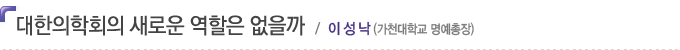 Àΰ£ÀÌ Å¾ Á×´Â °úÁ¤À» ÇÔÃàÇÑ Ç¥ÇöÀ¸·Î ÈçÈ÷ »ý·Îº´»ç(ßæÒÇÜ»ÞÝ)¶ó´Â »çÀÚ¼º¾î¸¦ »ç¿ëÇÑ´Ù. ±×·±µ¥ ÀÌ »ý·Îº´»çÀÇ ¸ðµç °úÁ¤¿¡ ÀÇ»çÀÇ ¼Õ±æÀÌ ¹ÌÄ¡Áö ¾ÊÀº °÷Àº ¾ø´Ù. ÀÌ´Â °ð ¿Ã¹Ù¸¥ ÀÇÇÐ Áö½Ä¿¡ ´ëÇÑ ±¹¹ÎÀû ¿å±¸°¡ ±×¸¸Å ¸¹´Ù´Â °Íµµ ÀǹÌÇÑ´Ù. ±×·±µ¥ Çö½ÇÀº ±×·¸Áö ¾Ê´Ù. Àü¹®¼ºÀÌ ¶³¾îÁö´Â ¡®±¤°í ¼öÁØ¡¯ÀÇ Ä¡·á ¹× ÀÇÇÐ ¼Ò½ÄÀÌ ¿ì¸® »ýȰ ÁÖº¯¿¡ ¾ó¸¶³ª ¹ü¶÷Çϰí Àִ°¡? ÀÌÁ¦ ´õ ÀÌ»ó ¹æ°ü¸¸ ÇÒ ¼ö ¾ø´Â Áö°æ¿¡ À̸£·¶´Ù°í »ý°¢ÇÑ´Ù. ÀÌ·± °ßÁ¦ ¶Ç´Â ÅëÁ¦¹ÞÁö ¾Ê´Â ÀÇ·á°è Àü¹ÝÀÇ À§±â »óȲ¿¡¼ ´ëÇÑÀÇÇÐȸ¸¸ÀÌ ÇÒ ¼ö ÀÖ´Â °íÀ¯ÀÇ ±âȸ°¡ ÀÖ´Ù°í º»´Ù. ƯÈ÷ ´ëÇÑÀÇÇÐȸ°¡ ÀÇÇа踦 ´ëÇ¥ÇÒ »Ó¸¸ ¾Æ´Ï¶ó ÃÖ°íÀÇ ÀÇ·á Á¤º¸¸¦ °ü¸®ÇÏ´Â ±³¼ö Áý´ÜÀ¸·Î ±¸¼ºµÇ¾î ÀÖ´Ù´Â »ç½ÇÀ» °¨¾ÈÇÏ¸é ´õ¿í ±×·¯ÇÏ´Ù.