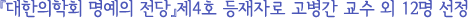 ÀÇÇйßÀüÀÇ ±â¹ÝÀÌ µÇ´Â ÇÐȸÀÇ À°¼º°ú ¹ßÀü¿¡ Çå½ÅÇÏ°í ºÀ»çÇϽŠºÐµéÀÇ ¾÷ÀûÀ» ±â¸®±â À§ÇØ ´ëÇÑÀÇÇÐȸ´Â 2008³â 11¿ùºÎÅÍ ¡º¸í¿¹ÀÇ Àü´ç¡»À» ¿î¿µÇϰí ÀÖ´Ù. ¿ÃÇØ´Â °íº´°£, ±â¿ë¼÷, ±èÁøÈ¯, ¸íÁÖ¿Ï, ¹éÀÎÁ¦, À¯Àç´ö, ÀÌ¿µ±Õ, ÀÌÇмÛ, Àå¿ìÇö, ÀåÀ±¼®, ÇÏÀÎÈ£, Çѽɼ®, ÇÑ¿ëö ±³¼ö¸¦ Á¦4È£ µîÀçÀÚ·Î ¼±Á¤Çß´Ù. ´ëÇÑÀÇÇÐȸ´Â ȨÆäÀÌÁö¿¡ ¸í¿¹ÀÇ Àü´ç Äڳʸ¦ ¸¶·ÃÇÏ¿© ÇåÁ¤ µÇ½Å ºÐµéÀÇ ¾÷Àû°ú °ü·Ã ÀڷḦ ¼Ò°³Çϰí ÀÖ´Ù.