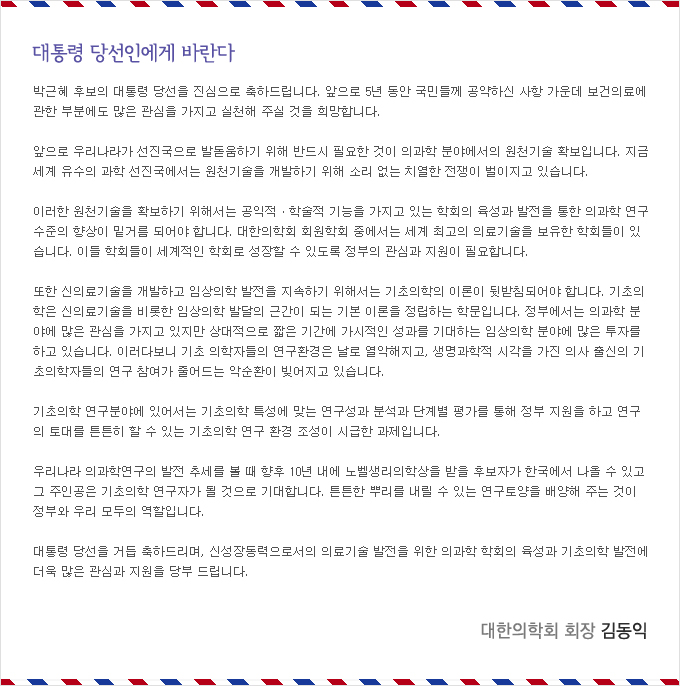 »õ·Î¿î Á¤ºÎ°¡ µé¾î¼¸é¼ ÀÇ·á º¹ÁöÀÇ È®´ë»Ó ¾Æ´Ï¶ó ÀÇÇÐÇмúȰµ¿¿¡ ´ëÇÑ ¿©·¯ °¡Áö »õ·Î¿î ¹æ¾ÈµéÀÌ ´ëµÎµÉ °ÍÀ¸·Î »ý°¢ÇÕ´Ï´Ù. Çй® ºÐ¾ß°£, Á÷¿ª°£ÀÇ ¼ÒÅë°ú ´ëȸ¦ ÅëÇØ ³»ºÎ ´ÜÇÕÀ» ÀÌ·ç´Â Àû±ØÀûÀÎ ³ë·ÂÀ» ÅëÇÏ¿© ¿©·¯ °¡Áö ÇÐȸ Çö¾ÈµéÀÌ ½½±â·Ó°Ô ±Øº¹µÇ¾úÀ¸¸é ÇÏ´Â ¹Ù¶÷ÀÔ´Ï´Ù.
