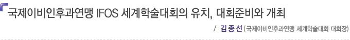 6. º» ÇмúÇà»ç¸¦ ¼º°ø¸®¿¡ ¸¶Ä¡¸ç °¡Àå ³ë·ÂÇÑ Á¶Á÷À§¿øÀåÀ» »õ·Î¿î »óÀÓÀÌ»çÁø¿¡ ÀÓ¸íµÇ¾î ¾ÕÀ¸·Îµµ ´ëÇÑÀ̺ñÀÎÈİúÇÐȸ¿Í IFOSÀÇ °ü°è°¡ ±ä¹ÐÇÏ°Ô µÇ¾ú´Ù. º» Çмú´ëȸÀåÀº ¾ÕÀ¸·Î 4³â°£ IFOSȸÀåÀ¸·Î Ȱ¾àÇÏ°Ô µÈ´Ù.