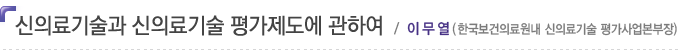 ½ÅÀÇ·á±â¼úÀ̶ó´Â ¿ë¾î´Â ¹°·Ð ¿ë¾î¸¦ ÅëÇØ ¾Ë ¼ö ÀÖµíÀÌ »õ·Î °³¹ßµÈ ÀÇ·á±â¼úÀ̶ó´Â Àǹ̵µ Æ÷ÇÔµÇÁö¸¸ ÇàÀ§º° ¼ö°¡Á¦¸¦ ½ÃÇàÇÏ´Â ÇöÀçÀÇ ±¹³» ÀÇ·áȯ°æ¿¡¼´Â ¾ÆÁ÷ ¼ö°¡Ã¼°è¿¡ ÁøÀÔÇÏÁö ¸øÇÑ ±â¼úÀÇ Àǹ̷ΠÀÌÇØÇÏ´Â °ÍÀÌ º¸´Ù ÀûÀýÇÒ °ÍÀ¸·Î »ý°¢µÈ´Ù.