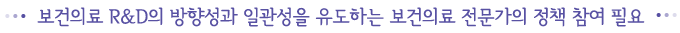 º¸°ÇÀÇ·á R&D¸¦ ¼º°øÀûÀ¸·Î ¼öÇàÇϱâ À§Çؼ´Â ¿¬±¸ºñ ÅõÀÚ, ¿¬±¸ ¼º°Ý¿¡ µû¸¥ ÅõÀÚ ¹èºÐ, ¿¬±¸ÀÇ Áö¿ø°ú °ü¸®, ¿¬±¸¼º°úÀÇ È°¿ë µîÀÌ ¸ðµÎ È¿À²ÀûÀ¸·Î ÀÌ·ç¾îÁ®¾ß ÇÑ´Ù.