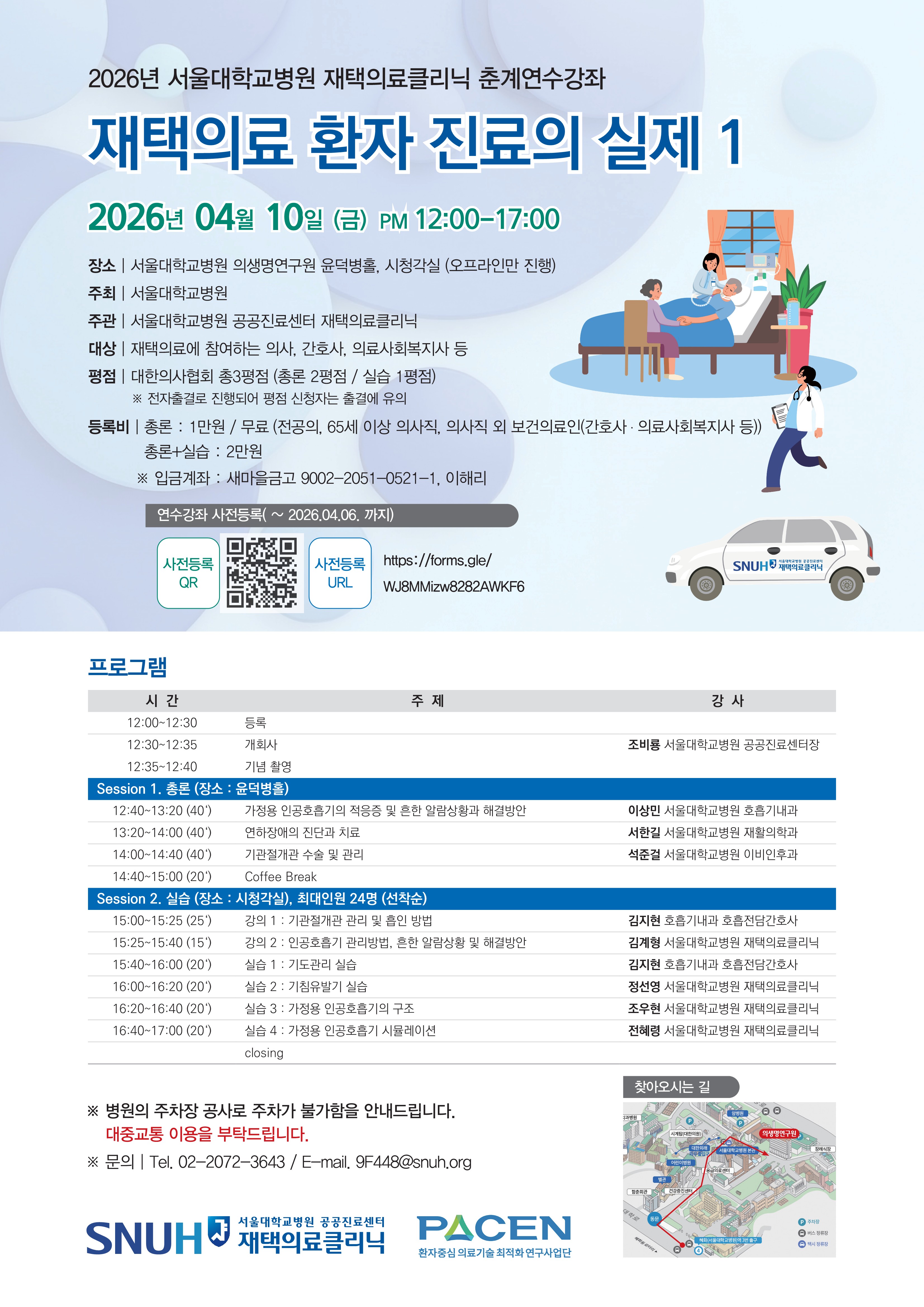[서울대학교병원 공공진료센터] 2026년도 재택의료 춘계연수강좌 개최 안...  |
