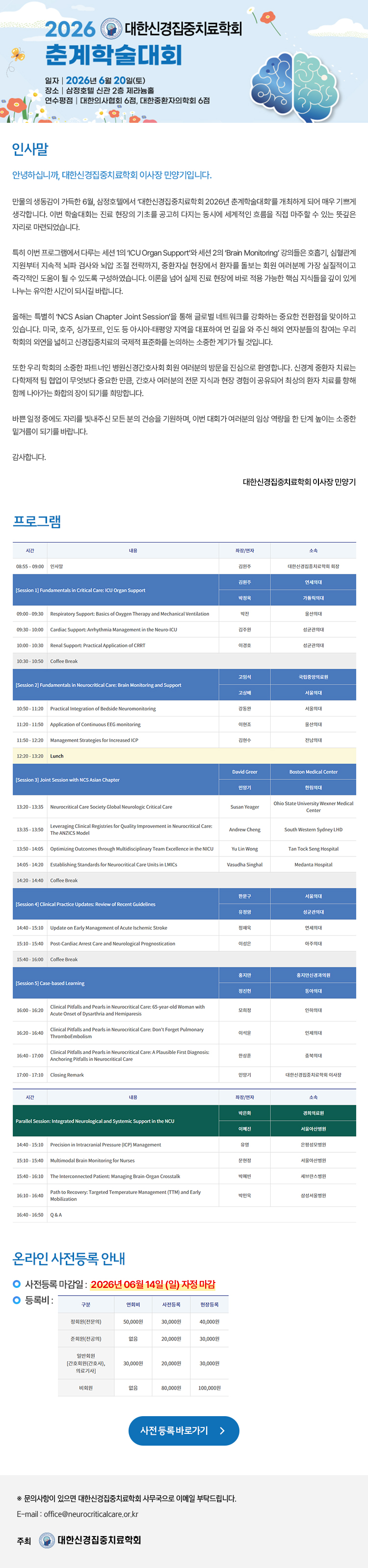 [대한신경집중치료학회] 2026년 춘계학술대회 개최 안내 |