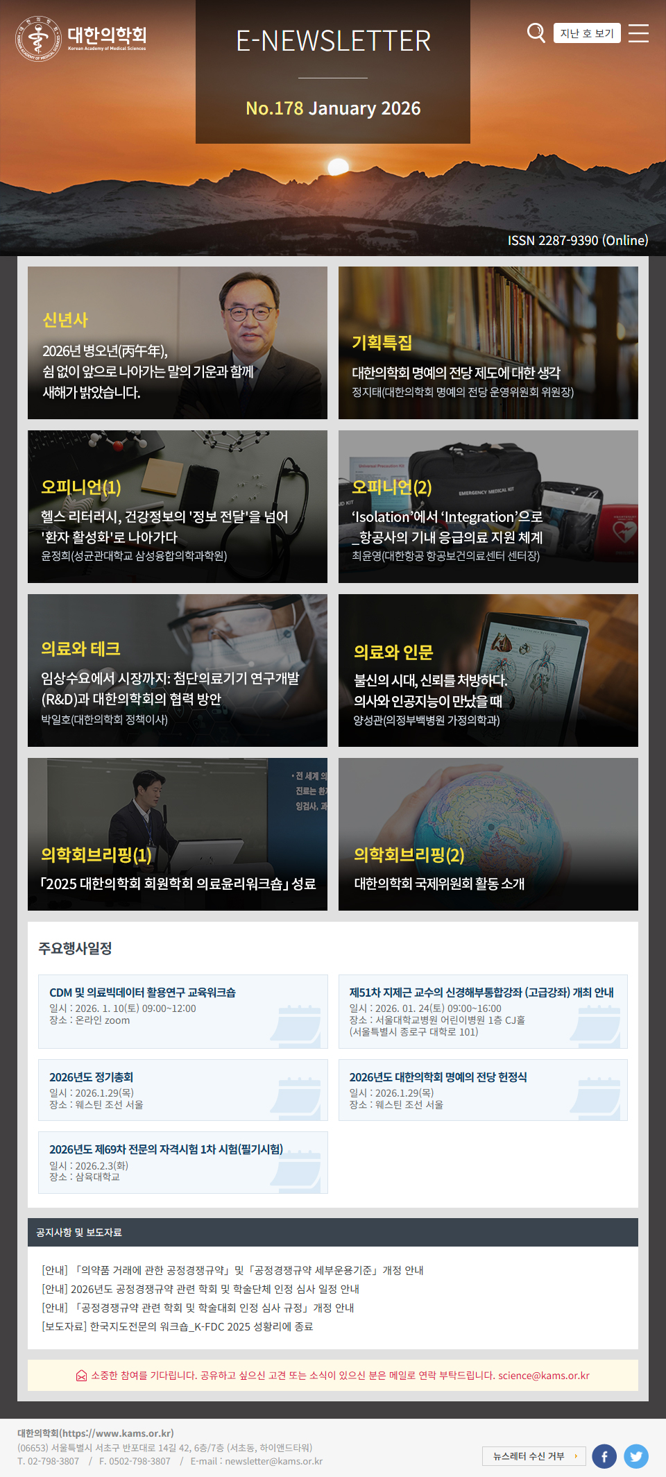 [소식] 대한의학회 e-뉴스레터 No.178 (2026년 1월호)