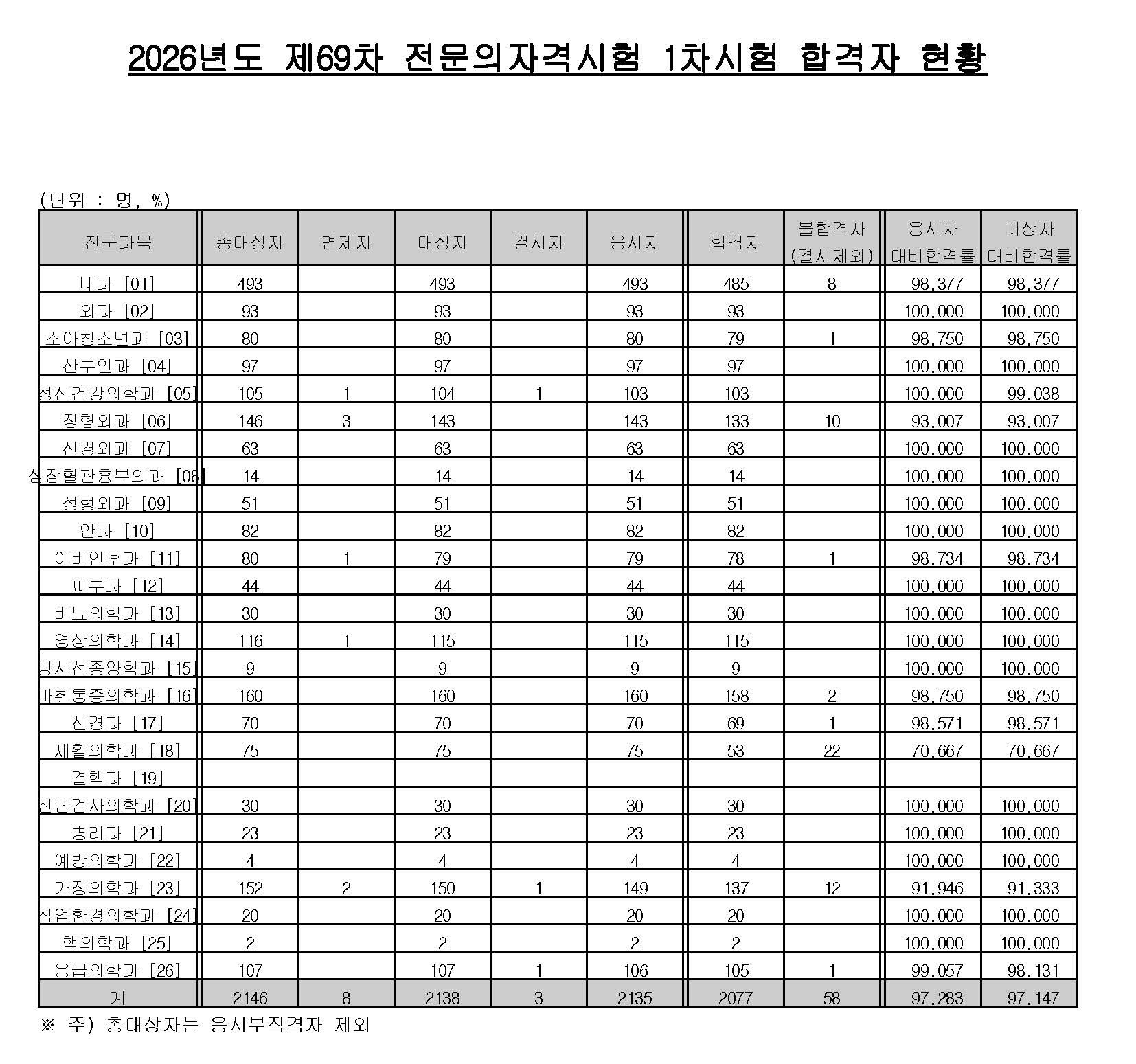 [공고] 2026년도 제69차 전문의 자격시험 1차시험 합격자 현황  |