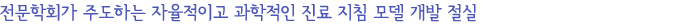 ´ëÇÑÀÇÇÐȸ´Â ÀÌ·¯ÇÑ ½Ã´ëÀû º¯È¿¡ Á÷¸éÇÏ¿©, ÀÓ»óÁø·áÁöħ ¿¬±¸¸¦ ÀÇ·á°è°¡ Àû±ØÀûÀ̰í ÁÖüÀûÀ¸·Î ÁÖµµÇذ¨À¸·Î¼ ÀÇ·áÀÇ Áú¿¡ ´ëÇÑ Àü¹®°¡ÀÇ ±ÇÀ§¿Í ¿ªÇÒÀ» µÇã°í ÀÇ·áÀÇ ÁúÀ» ÀúÇØÇÏ´Â Á¤Ã¥µé¿¡ ´ëÀÀÇϱâ À§ÇÑ ³ë·ÂÀÌ ÇÊ¿äÇÏ´Ù°í ÆÇ´ÜÇÏ¿´´Ù. ÀÌ¿¡ µû¶ó, 2006³âºÎÅÍ º¹ÁöºÎ ÀÇ·áÁ¤Ã¥°ú·ÎºÎÅÍ ¿¬±¸Áö¿øÀ» ¹ÞÀº ÀÌ·¡, ÇöÀç±îÁö ÀÓ»óÀü¹®°¡ÀÇ ´Éµ¿Àû °³¹ß°ú È®»êÀ̶ó´Â ÃëÁöÇÏ¿¡ ÀÓ»óÁø·áÁöħ ¿¬±¸¸¦ ¼öÇàÇØ¿À°í ÀÖ´Ù. ÀÌµé ¿¬±¸¿¡¼´Â ±×°£ ±¹³»¿¡¼ °³¹ßµÇ¾î¾ß ÇÒ ÀÓ»óÁø·áÁöħ ¿µ¿ªÀÇ ¿ì¼±¼øÀ§ ¼³Á¤ ¹× ÀÓ»óÁø·áÁöħ¿¡ ´ëÇÑ Á¤Ã¥ÃßÁø¹æÇâÀ» Á¦¾ÈÇÏ´Â ÇÑÆí, ´ÙÇÐÁ¦ Á¢±Ù µî ´Ù¾çÇÑ °³¹ßÀü·«À» Àû¿ëÇÑ »ç·ÊÁöħ °³¹ß°ú º¸±ÞÀ» ÅëÇØ ¹Ù¶÷Á÷ÇÑ Áø·áÁöħ °³¹ß ¸ðÇüÀ» Á¦½ÃÇØ¿À°í ÀÖ´Ù. ¶ÇÇÑ ±¹³» ÃÖÃÊ·Î À¥±â¹Ý Á¤º¸°øÀ¯¸¦ À§ÇØ ¡°´ëÇÑÀÇÇÐȸ ÀÓ»óÁø·áÁöħ Á¤º¸¼¾Å¸¡±¸¦ °³¼³ÇÏ¿© ±¹³» ÇÐȸµéÀÌ °³¹ßÇÑ ÀÓ»óÁø·áÁöħµéÀ» ¼ö·ÏÇÏ´Â ÇÑÆí, ´º½º·¹ÅÍ ¹ß°£ µîÀ¸·Î Á¤º¸¸¦ °øÀ¯Çسª°¡°í ÀÖ´Ù. ÃÖ±Ù¿£ À¥±â¹Ý Áø·áÁöħ µî·Ï°ú Æò°¡Ã¼°è¸¦ ¸¸µé¾î ÇÐȸµéÀÇ Áø·áÁöħ °³¹ß°úÁ¤À» Áö¿øÇϰí ÀÖ´Ù.