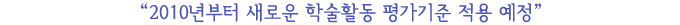 ÀÌ·¸°Ô °³¼±µÈ Æò°¡ ±âÁØÀº 2008³âºÎÅÍ 2009³â±îÁö 2³â°£Àº ÇöÇà±âÁذú ÇÔ²² º´Çà Àû¿ëÇÏ¿© ÇÐȸ°¡ »õ·Î¿î ±âÁØ¿¡ ÀûÀÀÇϰí ÁغñÇÒ ¼ö ÀÖ°Ô ÇÏ¿´½À´Ï´Ù. 2010³âºÎÅÍ´Â »õ·Ó°Ô ¹Ù²ï ±âÁØÀ¸·Î ÇÐȸ¸¦ Æò°¡ÇÒ ¿¹Á¤ÀÌ¸ç °´°üÀûÀ¸·Î Æò°¡ÇÒ ¼ö ÀÖ´Â ¼¼ºÎÁöħµµ ¸¶·ÃÇÏ¿´½À´Ï´Ù.