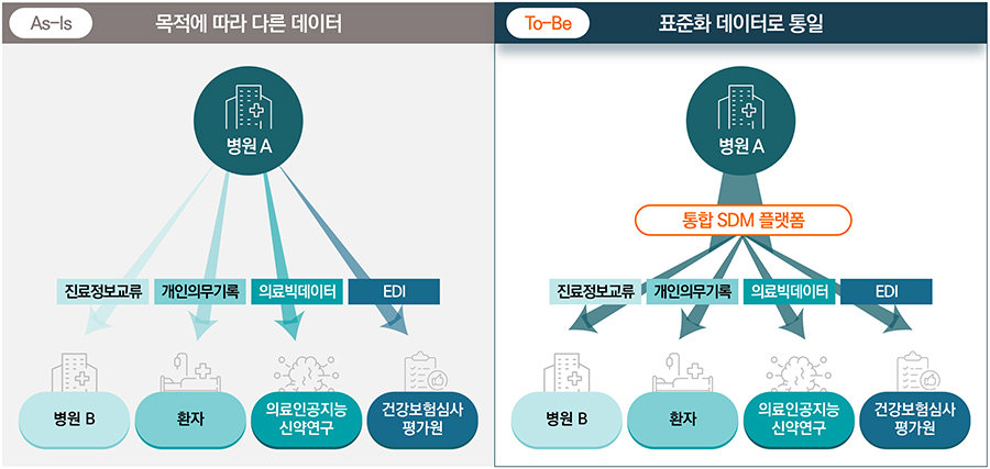 본 사업의 성공적인 수행은 대한민국 보건의료시스템에 혁신적인 변화를 가져오는 계기가 될 수 있다. 환자들은 병원을 옮길 때마다 겪었던 불편에서 벗어나 연속성 있는 고품질 의료 서비스를 제공받는 환경에 더 가까워질 수 있으며, 의료기관은 표준화된 데이터를 통해 진료 효율성을 높여나갈 수 있다. 또한 AI 헬스케어 기업들에게는 기술 개발의 장벽이 낮아져 산업 생태계가 활성화되는 기반이 마련될 수 있다. 파편화된 데이터를 통합 SDM 플랫폼으로 상호운용성을 확보함으로써 의료 데이터가 안전하고 유용하게 교류되어 국가 보건 의료 R&D 경쟁력을 한 단계 끌어올리는 중요한 발판이 될 수 있을 것이다.