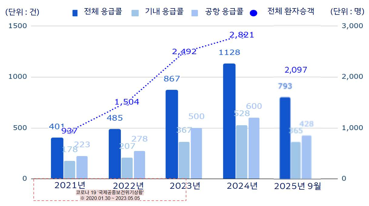 이러한 응급콜 건수의 증가 추이는 지상 의료진의 조언이 기내 응급상황 대처의 중요한 '안전망'이자 의료진의 '중과실 방지 장치'임을 여실히 증명한다. 결론적으로, 법적, 제도적 장치들은 선의로 응급처치를 제공한 의료진의 책임을 면제하고, 항공사 역시 법적 책임을 보장함으로써 의료진이 안심하고 도움을 제공할 수 있도록 지원하고 있다.