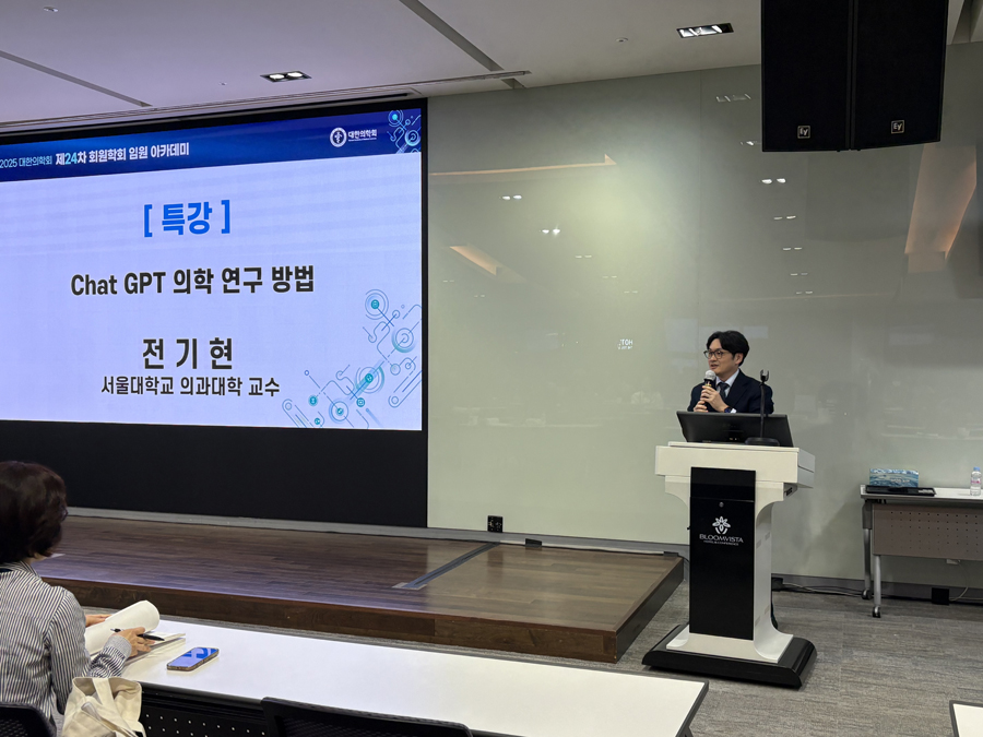 같은 날 오후에는 “ChatGPT 의학 연구 방법”을 주제로 전기현 서울의대 교수의 ChatGPT 기술의 이해와 한계에 대해 파악하고 연구와 논문 작성에 있어서 ChatGPT 기술을 올바르고 적합하게 사용하는 방법을 듣는 시간을 가졌다. 전기현 교수의 특강으로 첫째 날 세션을 종료했다.