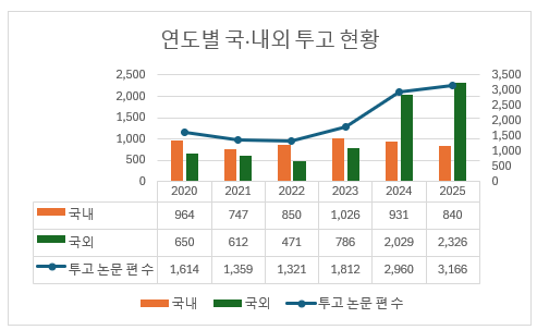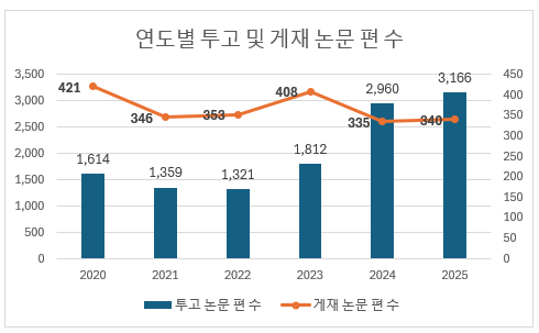 | 게재율 | 26.1% | 23.8% | 26.7% | 20.1% | 8.4% | 8.9% |