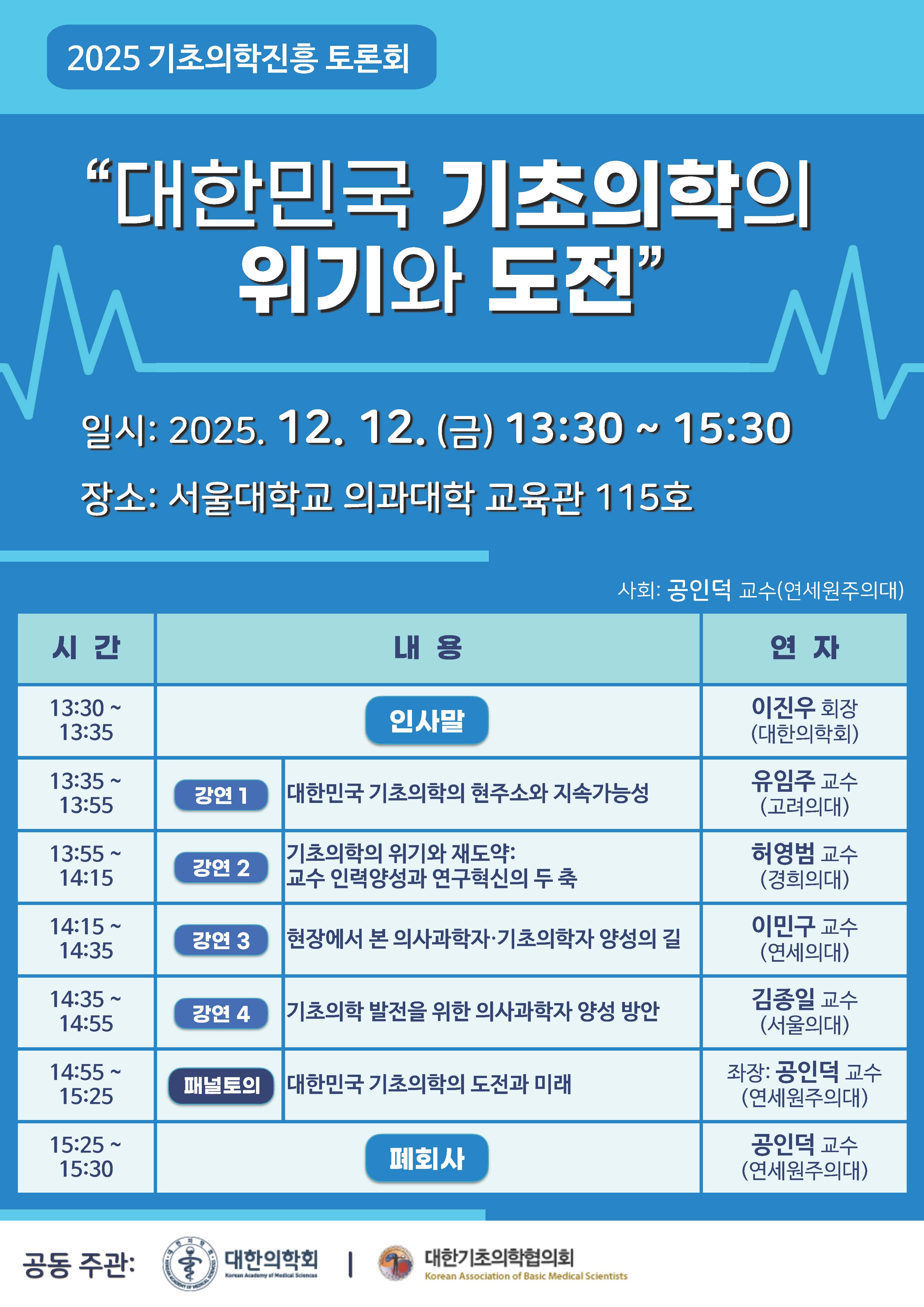 [행사] 2025 기초의학진흥 토론회 개최 안내 |