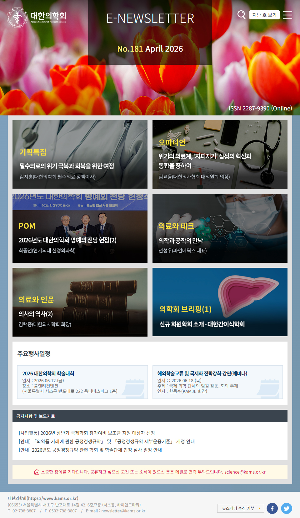 [소식] 대한의학회 e-뉴스레터 No.181 (2026년 4월호) |